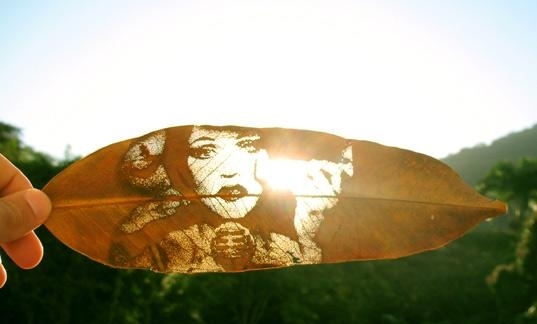 激光打標在樹葉上雕刻圖案